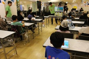 ロジカのブースでは、「海の生き物の動きをプログラミングで再現しよう!」をテーマに、子どもたちがタブレットを使ってキャラクターを動かす体験を行いました。